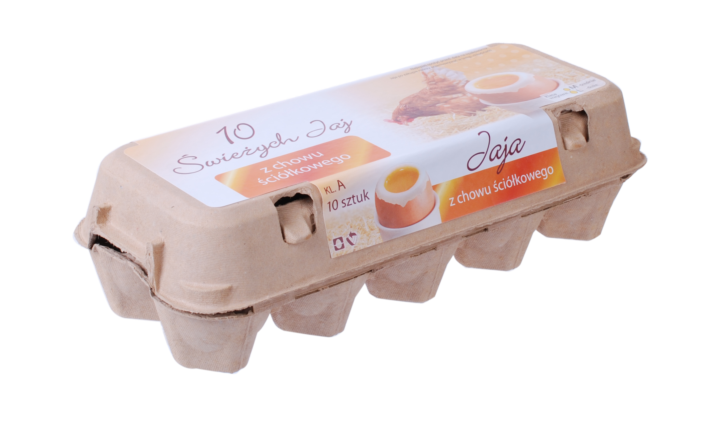 - opakowania czyste bez nadruku – wytłoczki bez nadruków oraz etykiety. Jest to z pewnością rozwiązanie najtańsze z dostępnych i przeznaczone raczej dla tych producentów jaj, którzy posiadają własne etykiety i dysponują warunkami do ich naklejenia, jak i tych podmiotów, które przy sprzedaży wykorzystują tzw. „ringi” kartonowe (takie jak na obrazku)