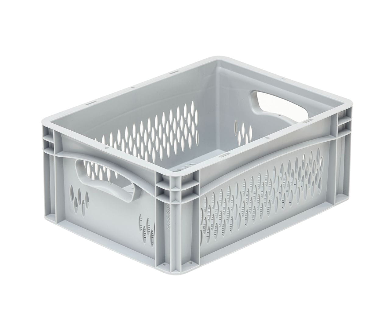 Pojemniki Basicline Euro-Norm są dostępne w wielu wariantach – z pełnym lub perforowanym dnem, zamkniętymi lub otwartymi uchwytami oraz opcjonalnymi pokrywami. Dzięki znormalizowanym wymiarom (150x200 mm, 300x200 mm, 400x300 mm, 600x400 mm, 800x600 mm) można je łatwo łączyć i sztaplować, co zapewnia wygodę i bezpieczeństwo w transporcie.