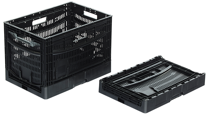 Po złożeniu skrzynka ma zaledwie 83 mm wysokości, co daje aż 84% redukcji objętości – dzięki czemu znacząco obniża koszty transportu zwrotnego i magazynowania pustych pojemników.