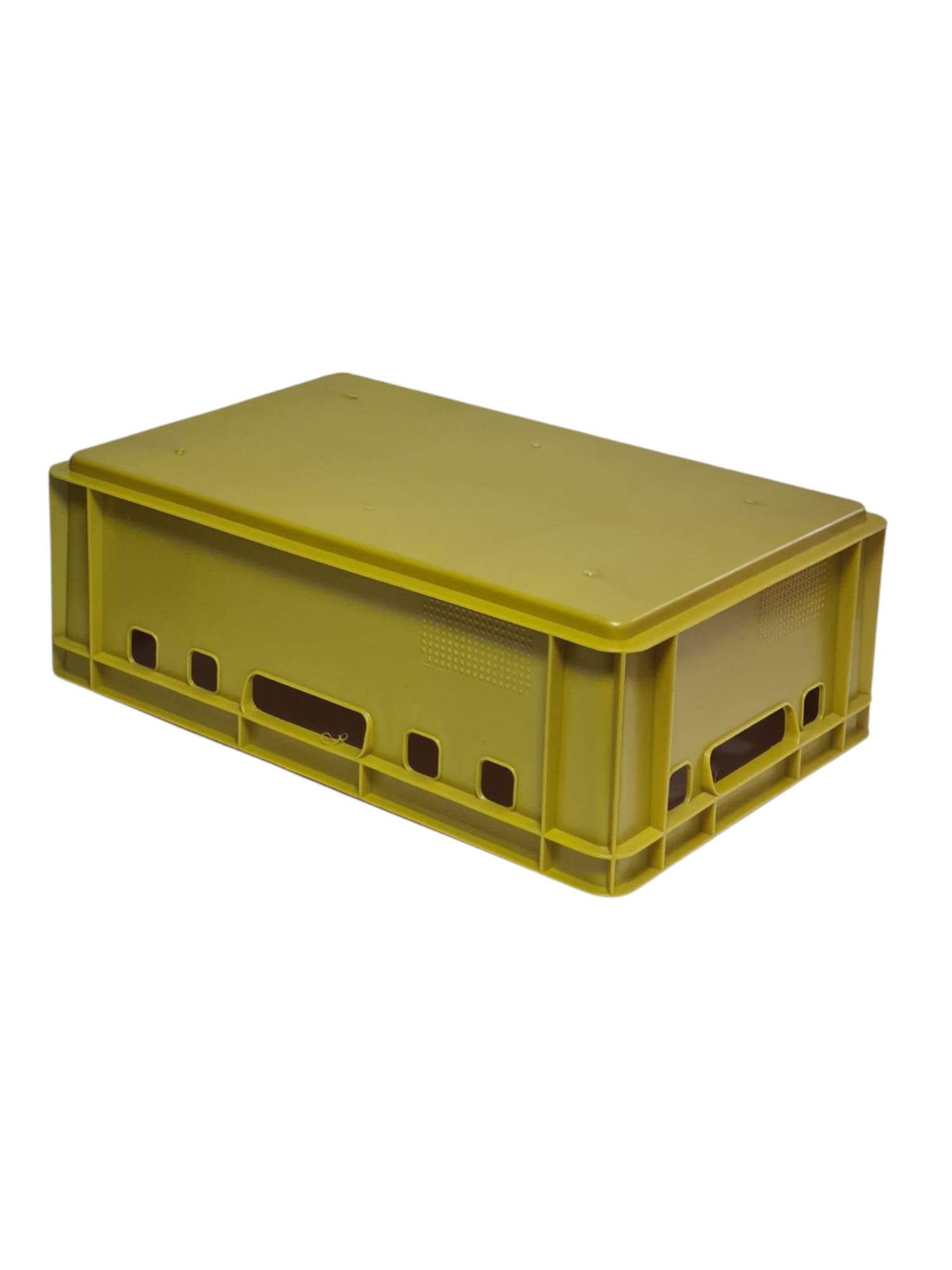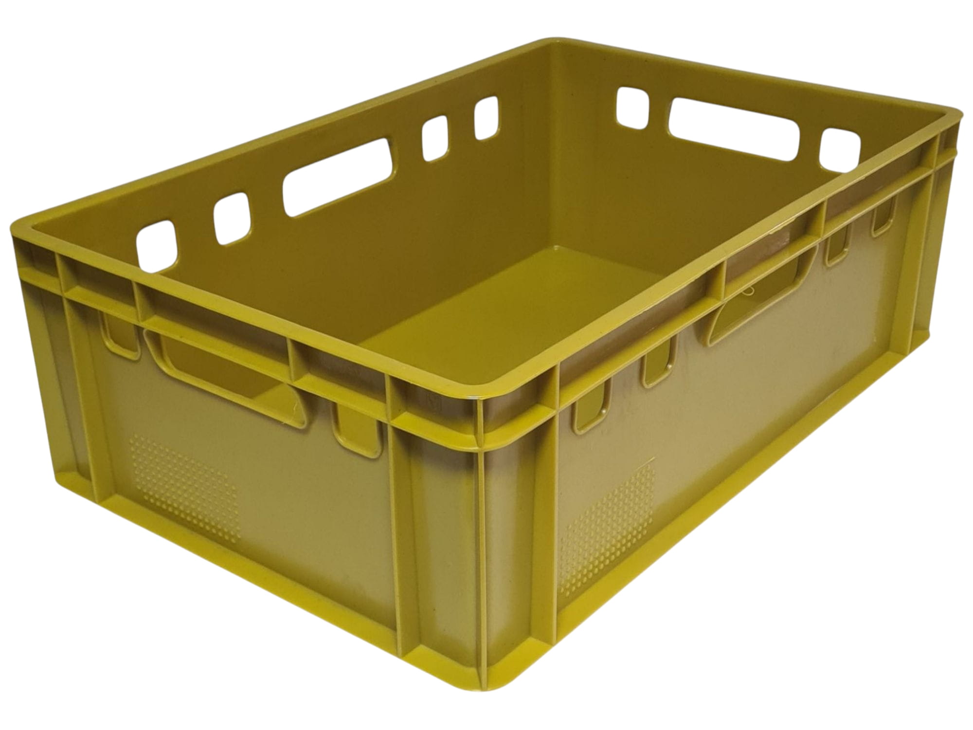 Skrzynka plastikowa E2 EURO żółta o pełnym dnie i wzmocnionych ściankach to profesjonalne rozwiązanie zaprojektowane z myślą o bezpiecznym transporcie oraz efektywnym magazynowaniu produktów.