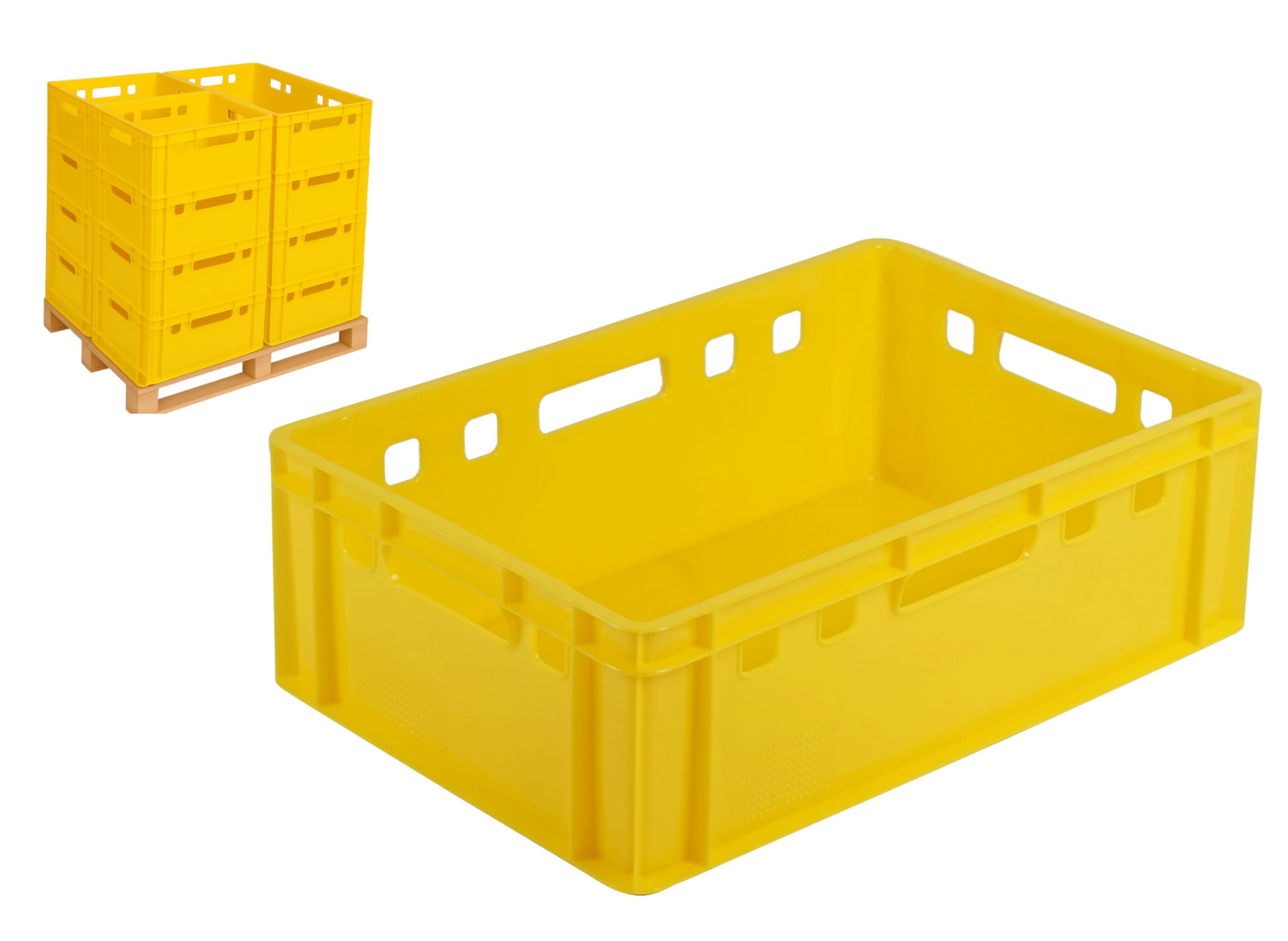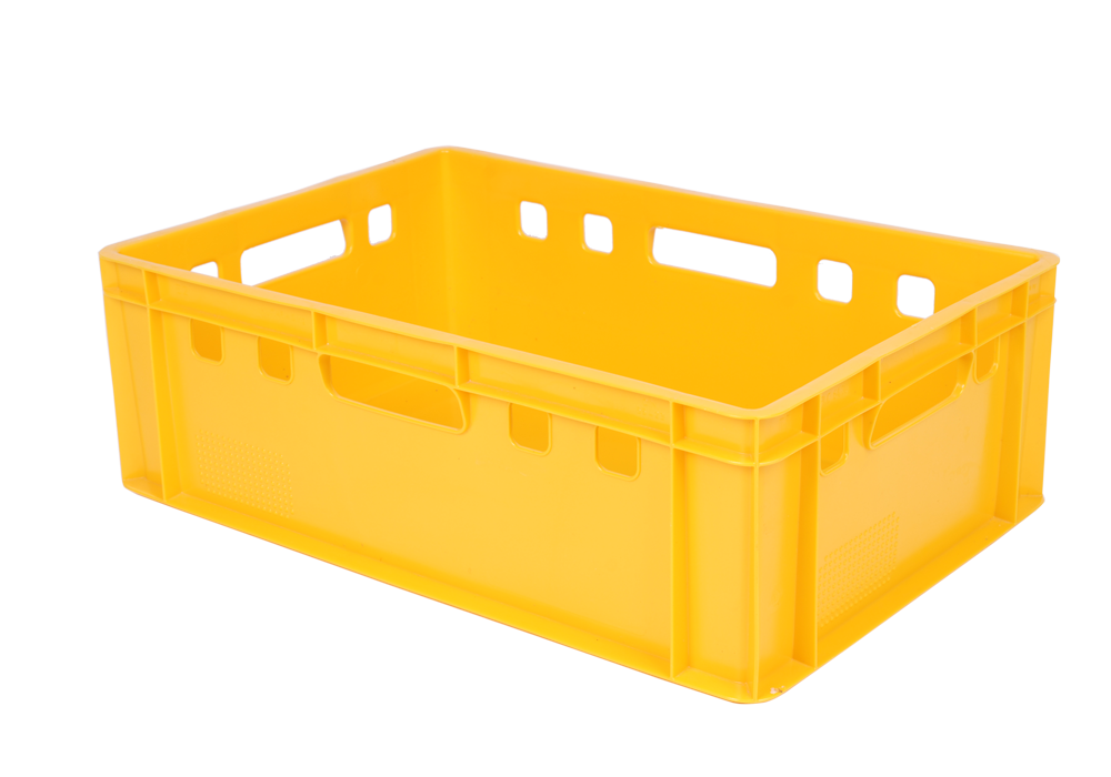 E2 żółta skrzynka plastikowa euro na mięso 600x400x200 paleta