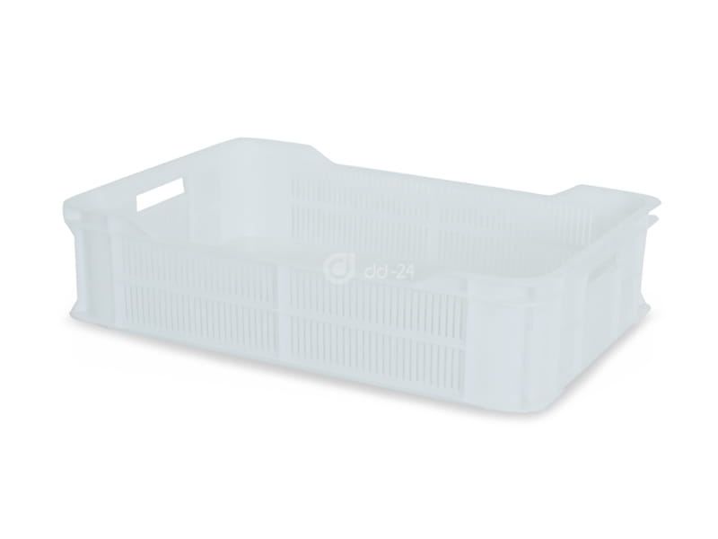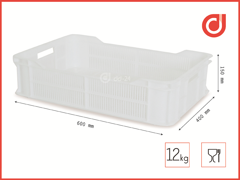 Kształt i wymiary sprawiają że jest bardzo pojemna a zarazem można ją optymalnie ułożyć na palecie. Specjalna konstrukcja sprawia że skrzynka jest mocna i wytrzymała, a wygodne rączki ułatwiają podnoszenie i transport. Posiada atest do kontaktu z żywnością.