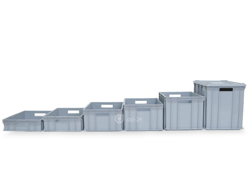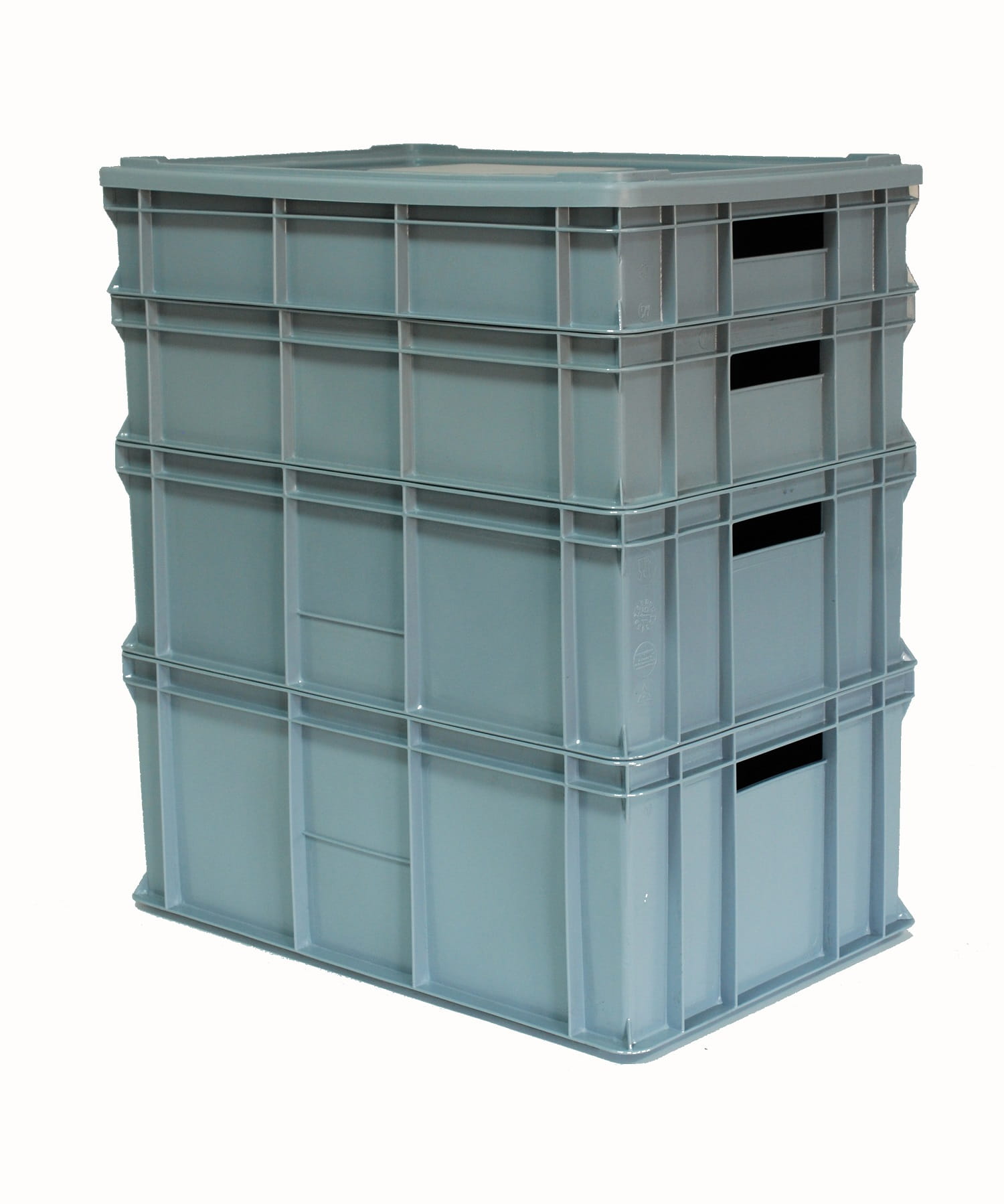 Kształt i rozmiary umożliwiają optymalne ułożenie na palecie a specjalna konstrukcja sprawia że skrzynka jest mocna i wytrzymała. Wygodne uchwyty ułatwiają podnoszenie i przenoszenie Twoich produktów a zagnieżdżenie skrzynek gwarantuje bezpieczeństwo przy transporcie skrzynek ułożonych w słupie.