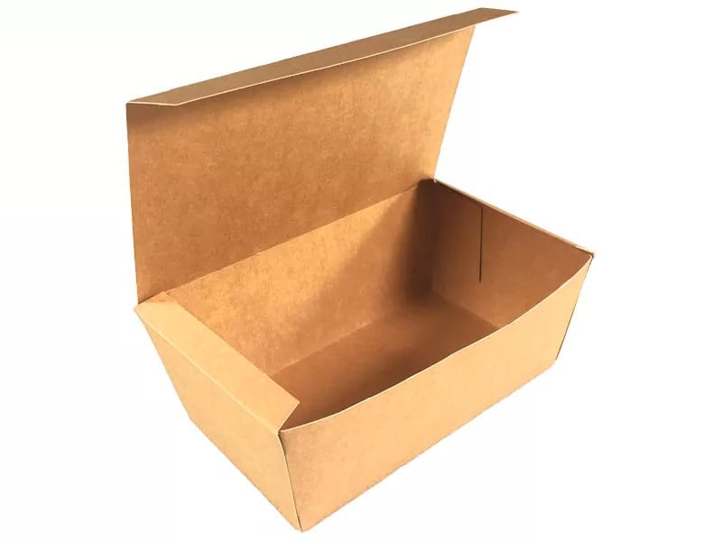 Opakowanie tekturowe na hamburgery jest bez nadruku i daje wiele możliwości pakowania.