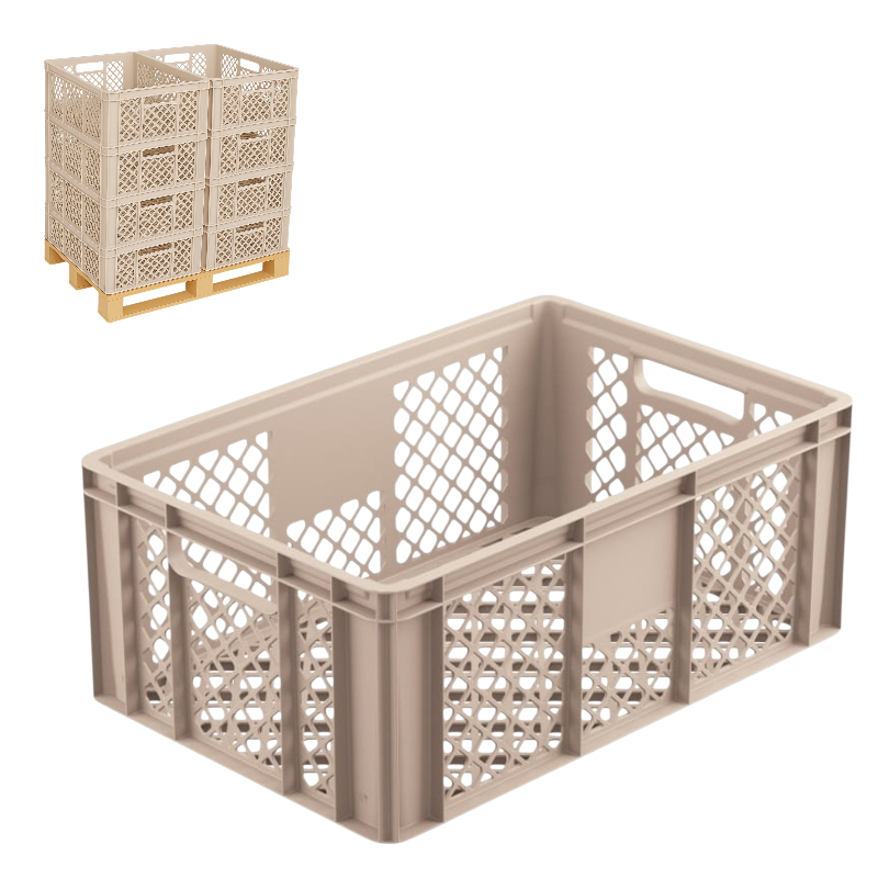✅ Wzmocnione narożniki – minimalizują ryzyko uszkodzeń podczas transportu i umożliwiają bezpieczne sztaplowanie skrzynek.