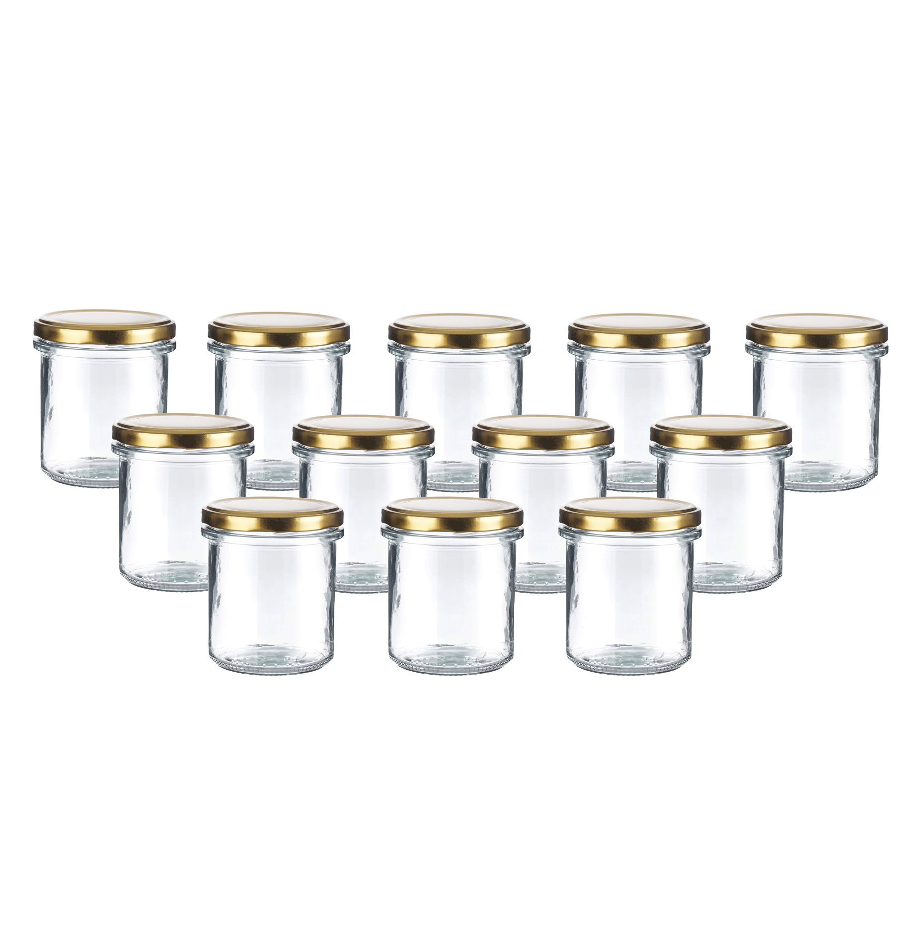 Słoiki szklane 350 ml ze złotą nakrętką idealne do przetworów, konfitur, dżemów i miodu. Świetnie sprawdzą się także do przechowywania przypraw i innych sypkich produktów. Zakrętka typu Twist daje pewność, że słoik będzie szczelny a domowy wyrób w nim zamknięty zachowa swoją świeżość na dłużej.